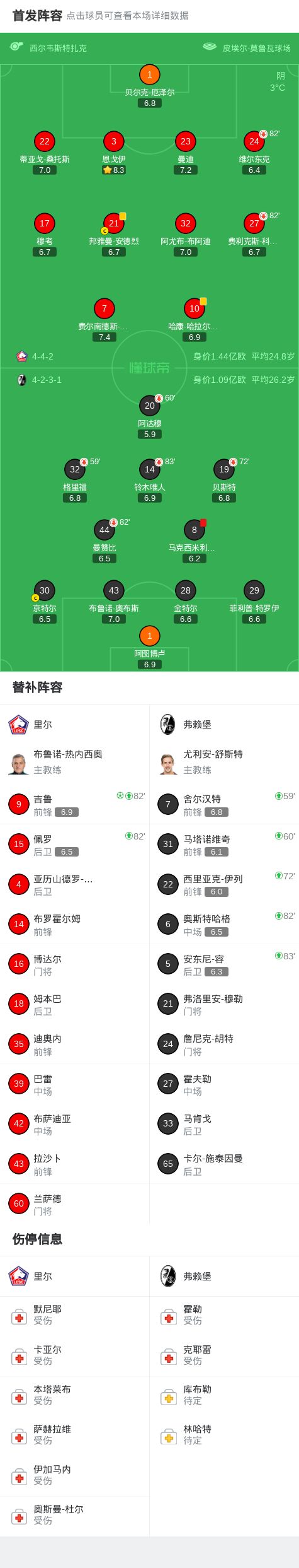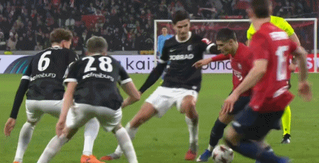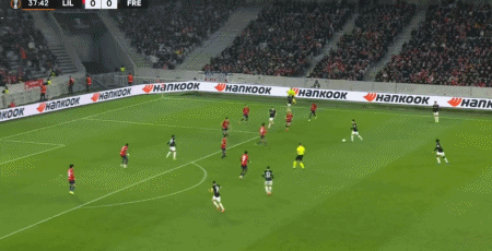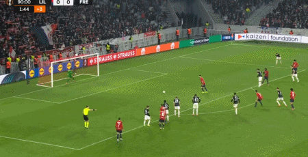 第90+2分鐘,帕爾多造點,吉魯主罰點球命中,里爾1-0弗賴堡
