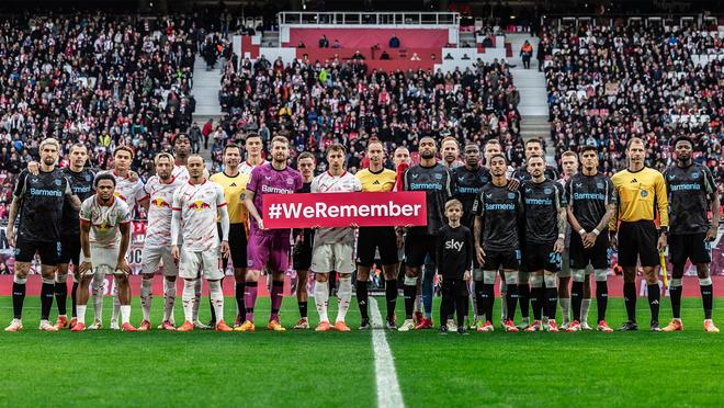 比賽開(kāi)始前,兩支球隊(duì)的球員與裁判一同站在球場(chǎng)上,手持寫有 “銘記歷史”(#WeRemember)的標(biāo)語(yǔ),背景是座無(wú)虛席的體育場(chǎng),用團(tuán)結(jié)與緬懷開(kāi)啟賽事。2024/25 賽季門興格拉德巴赫對(duì)陣波鴻的比賽前,看臺(tái)上曾打出 “永不重演,就在當(dāng)下!”(Never again is now!)的巨型橫幅,傳遞著深刻的警示。